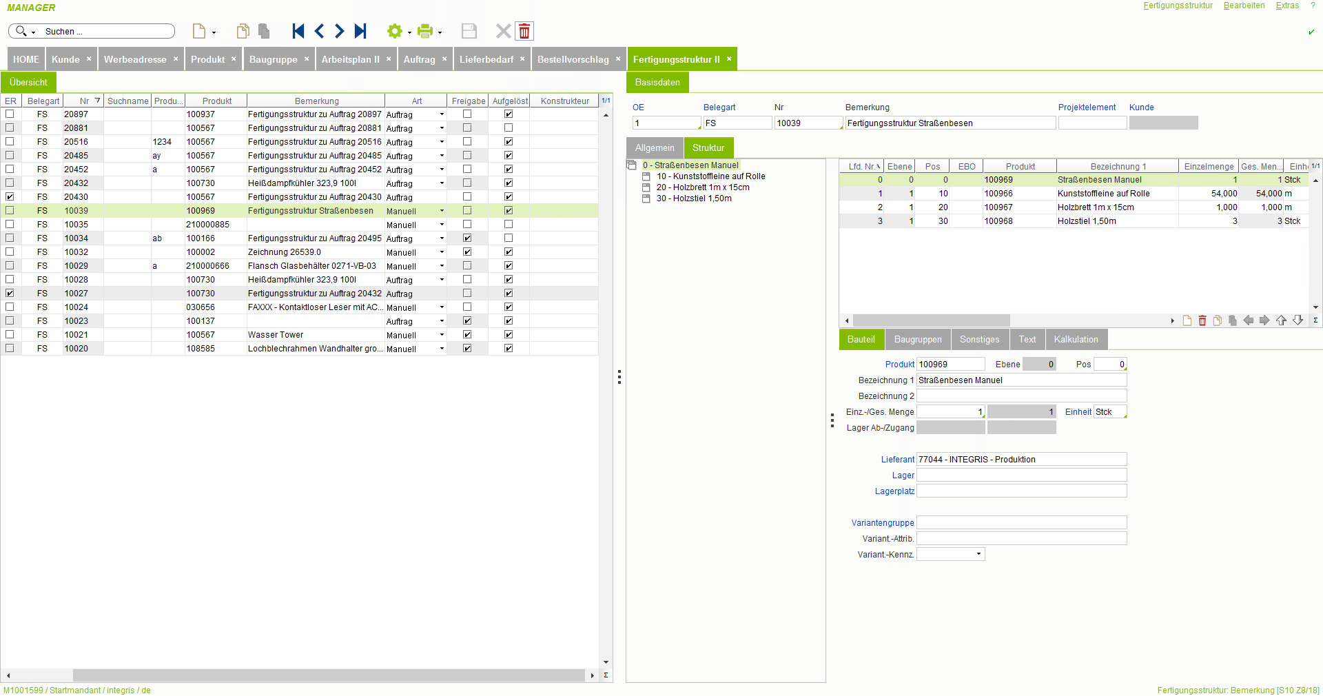 eGECKO Integris ERP Baugruppen und Fertigungsstruktur: